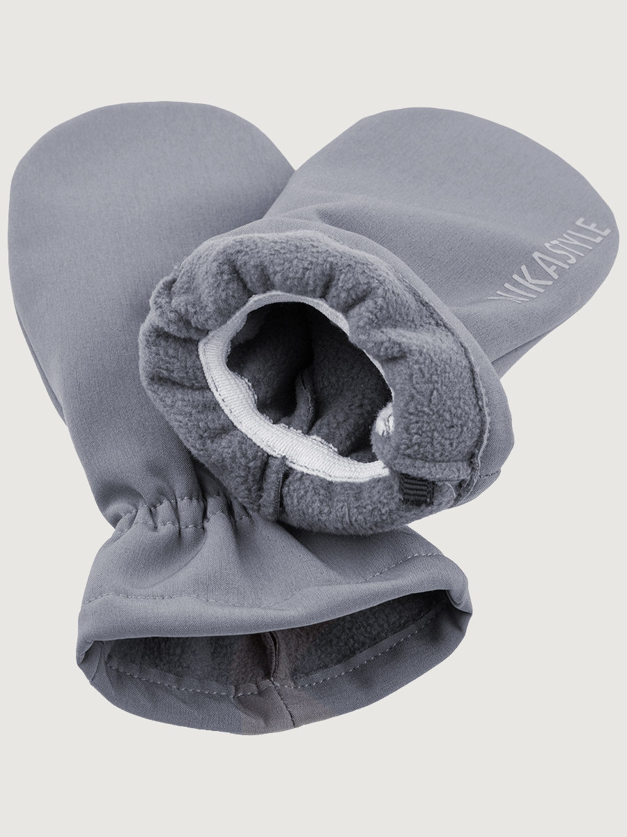 Варежки из Softshell с резинкой на запястье. Softshell - это инновационный материал нового поколения, внешний слой которого защищает от влаги, внутренний слой из флиса сохраняет тепло и отводит лишнюю влагу, а промежуточный мембранный слой имеет хорошую паропроницаемость и позволяет коже дышать. Softshell приятный на ощупь, легкий и эластичный материал, не сковывающий движения ребенка.