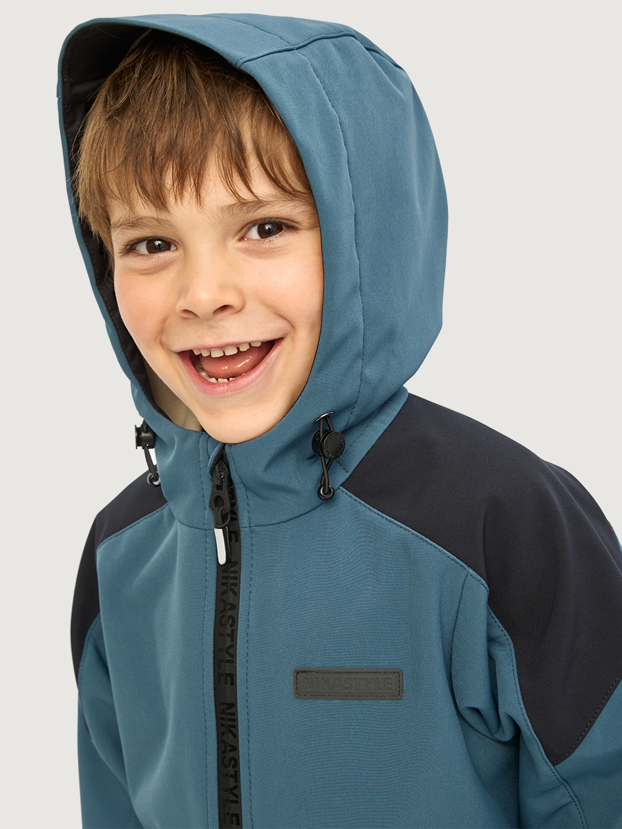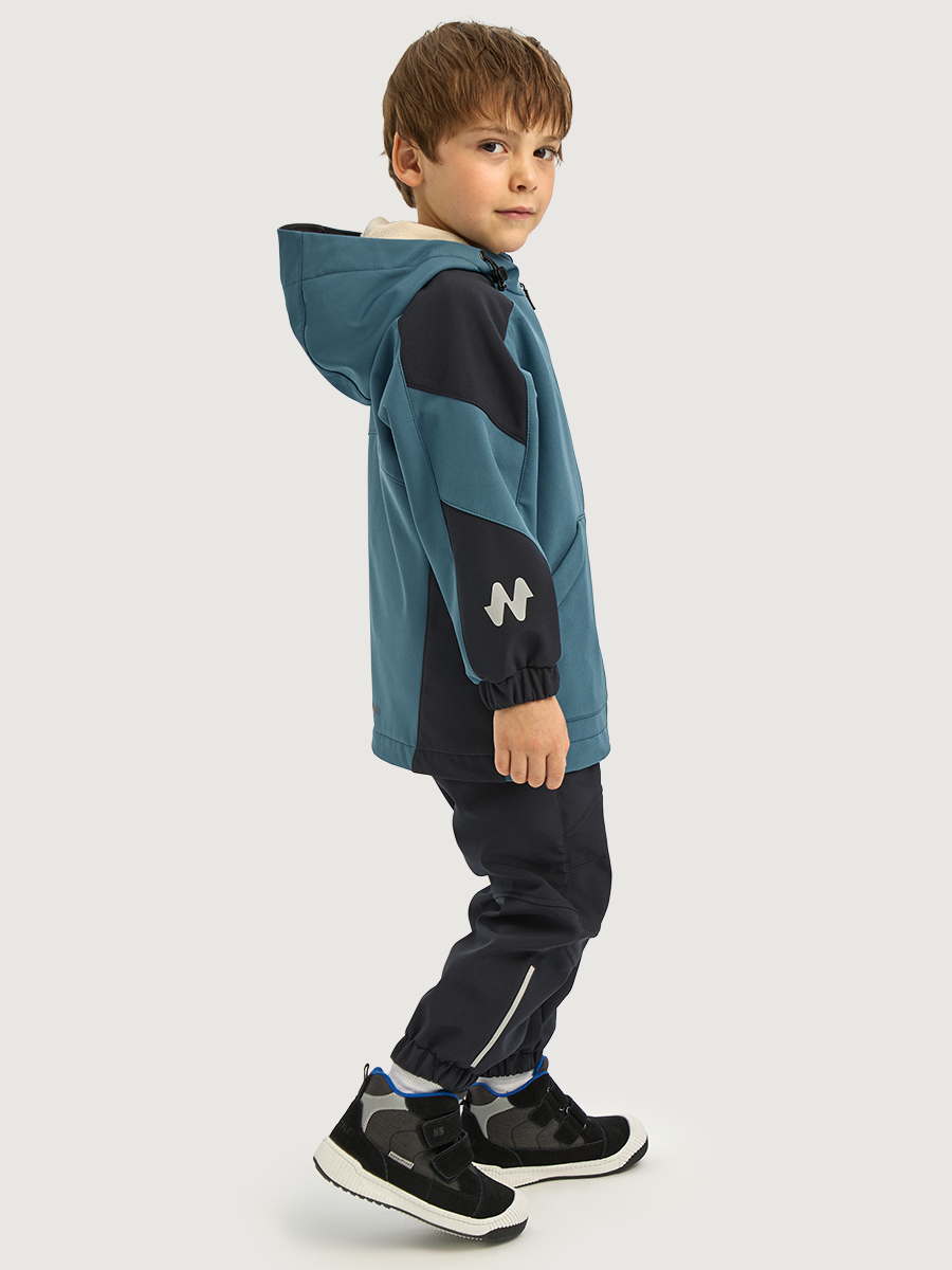 Ветровка для мальчика СКАЙЛАЙН из Softshell идеально подходит активным детям на прогулках, которые много двигаются и не сидят на месте. Softshell - это инновационный материал нового поколения, внешний слой которого защищает от влаги и ветра, внутренний слой из флиса сохраняет тепло и отводит лишнюю влагу, а промежуточный мембранный слой имеет хорошую паропроницаемость и позволяет коже дышать. Softshell приятный на ощупь, легкий и эластичный материал, не сковывающий движения ребенка.