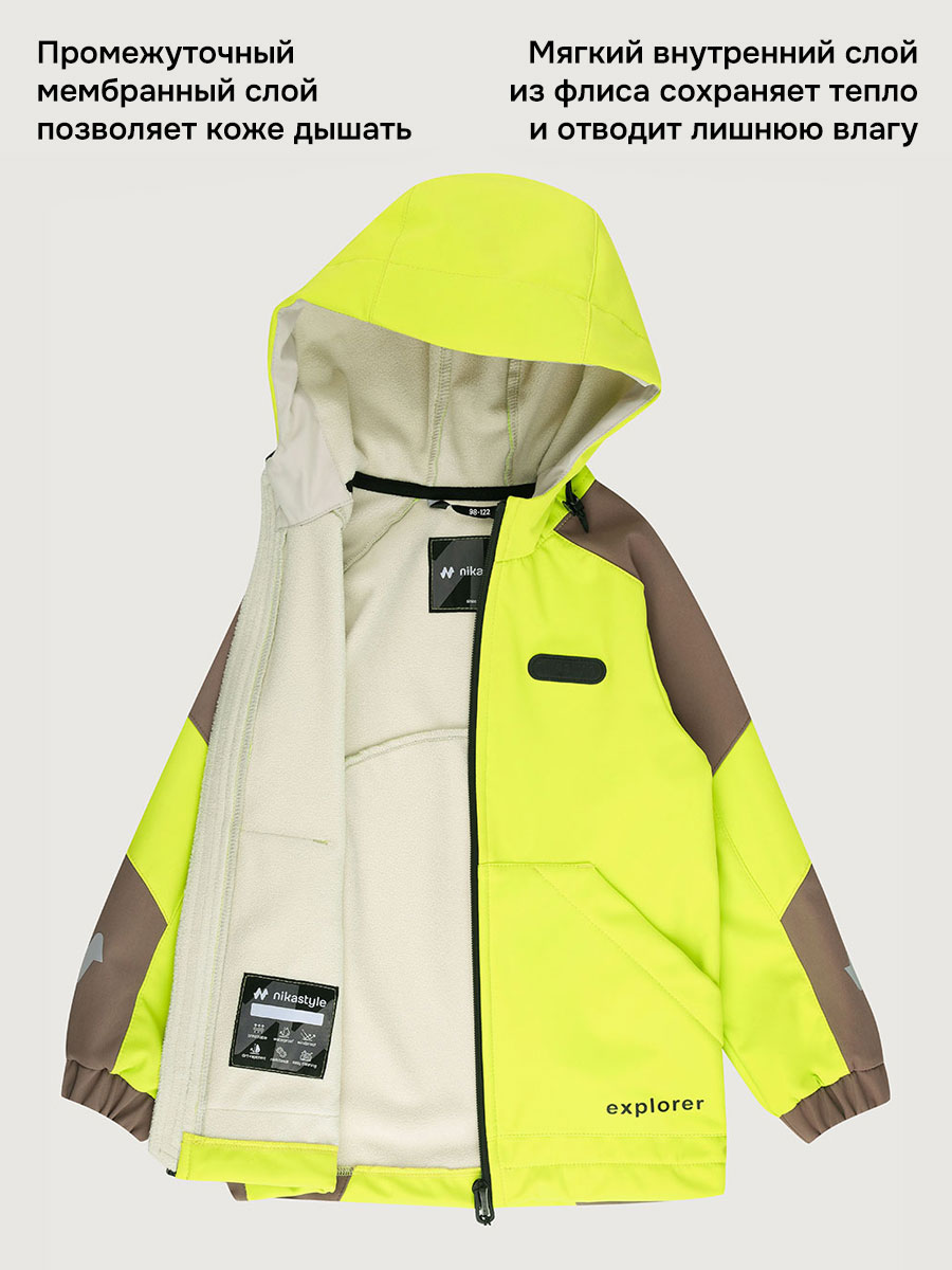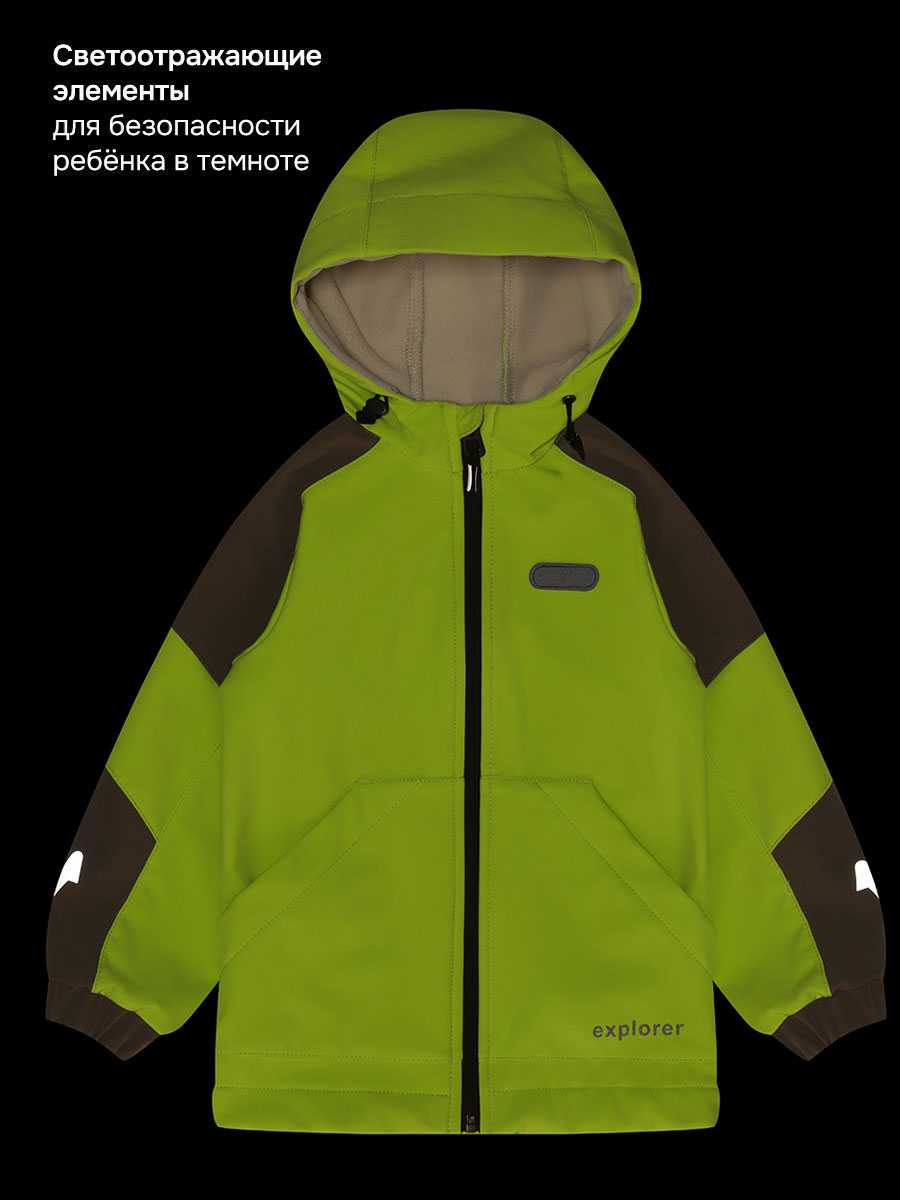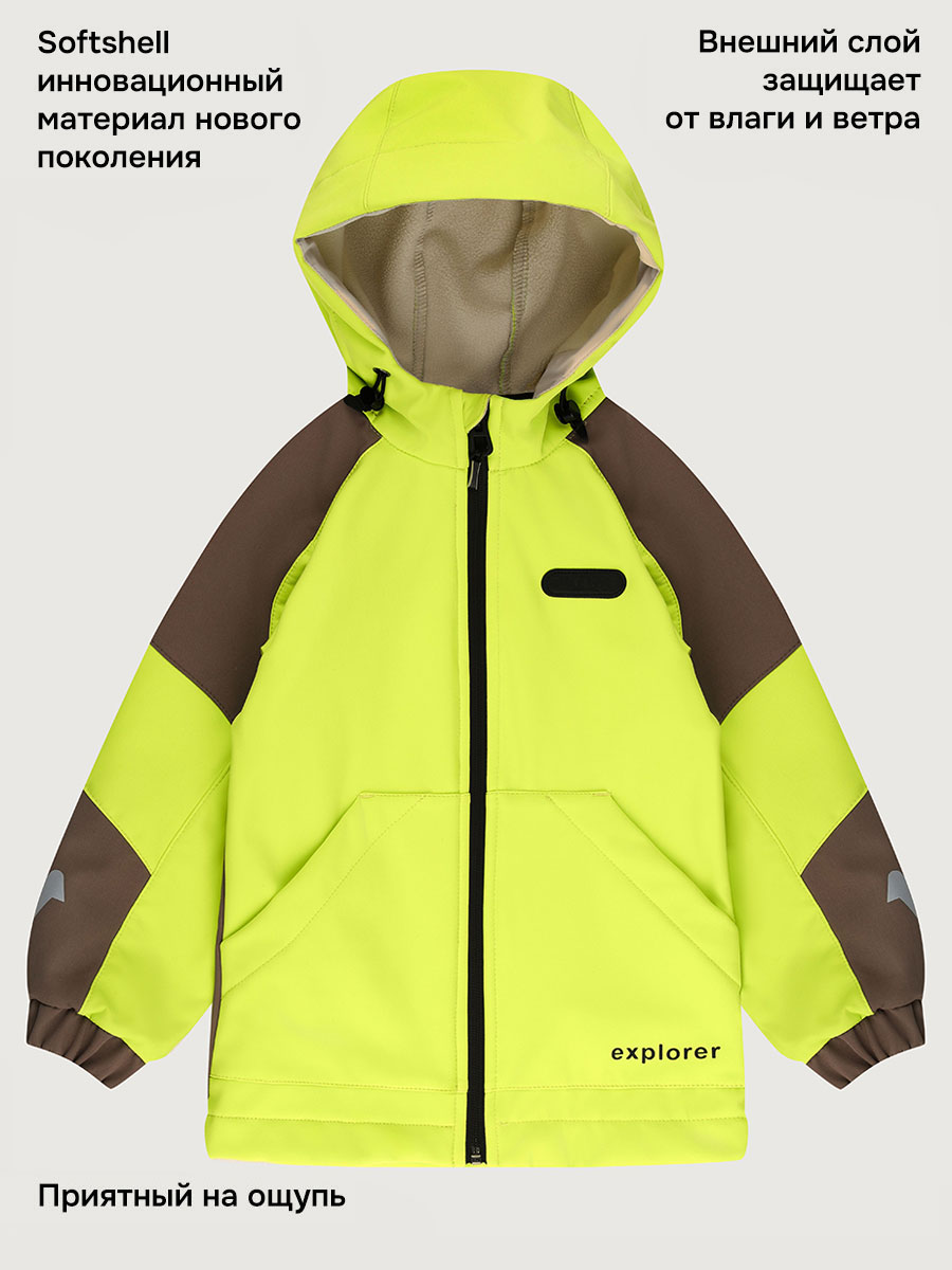 Ветровка для мальчика СКАЙЛАЙН из Softshell идеально подходит активным детям на прогулках, которые много двигаются и не сидят на месте. Softshell - это инновационный материал нового поколения, внешний слой которого защищает от влаги и ветра, внутренний слой из флиса сохраняет тепло и отводит лишнюю влагу, а промежуточный мембранный слой имеет хорошую паропроницаемость и позволяет коже дышать. Softshell приятный на ощупь, легкий и эластичный материал, не сковывающий движения ребенка.