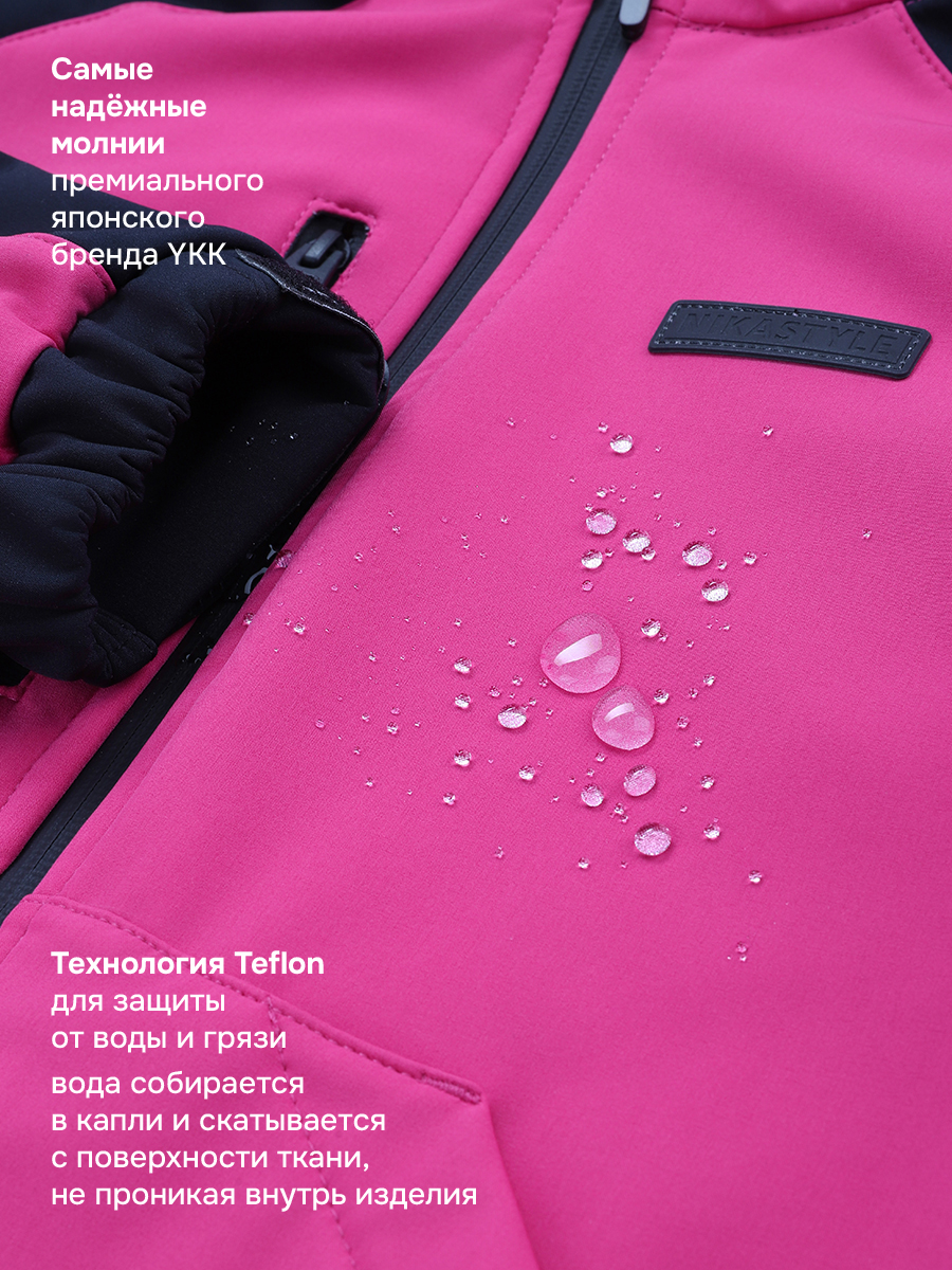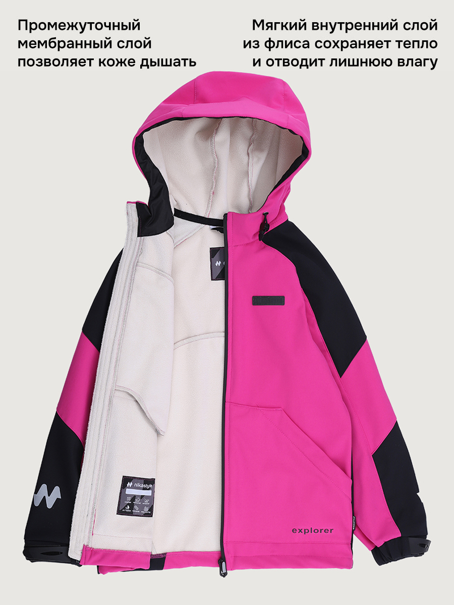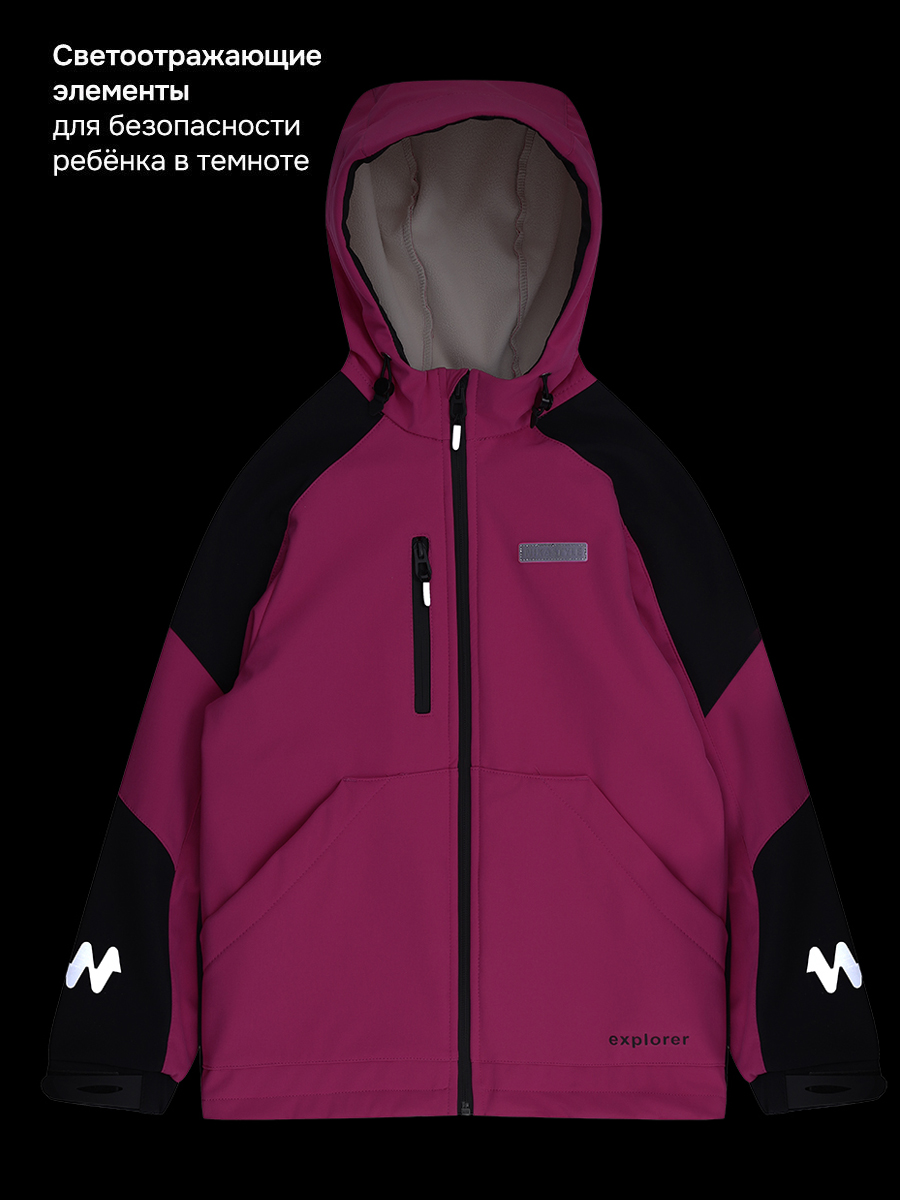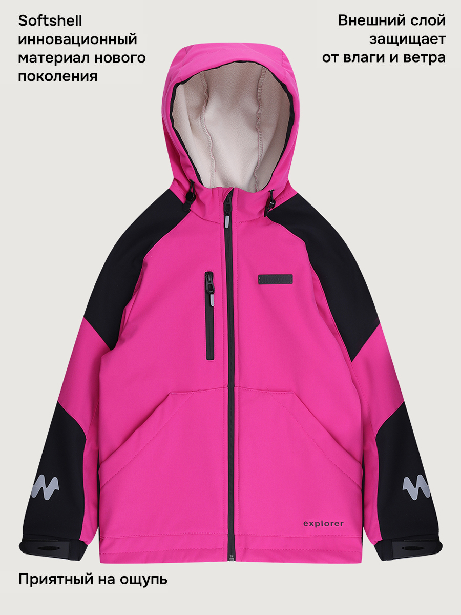 Ветровка для девочки СКАЙЛАЙН из Softshell идеально подходит активным детям на прогулках, которые много двигаются и не сидят на месте. Softshell - это инновационный материал нового поколения, внешний слой которого защищает от влаги и ветра, внутренний слой из флиса сохраняет тепло и отводит лишнюю влагу, а промежуточный мембранный слой имеет хорошую паропроницаемость и позволяет коже дышать. Softshell приятный на ощупь, легкий и эластичный материал, не сковывающий движения ребенка.