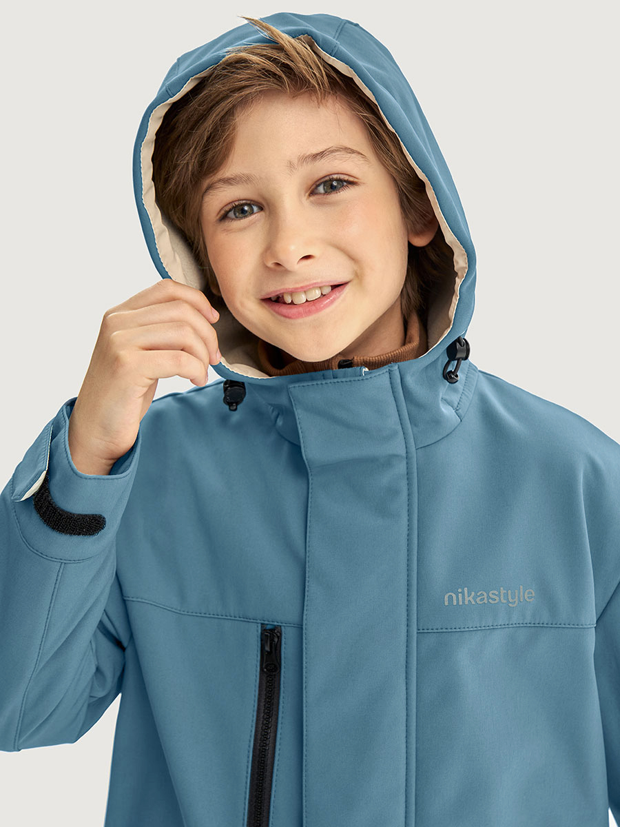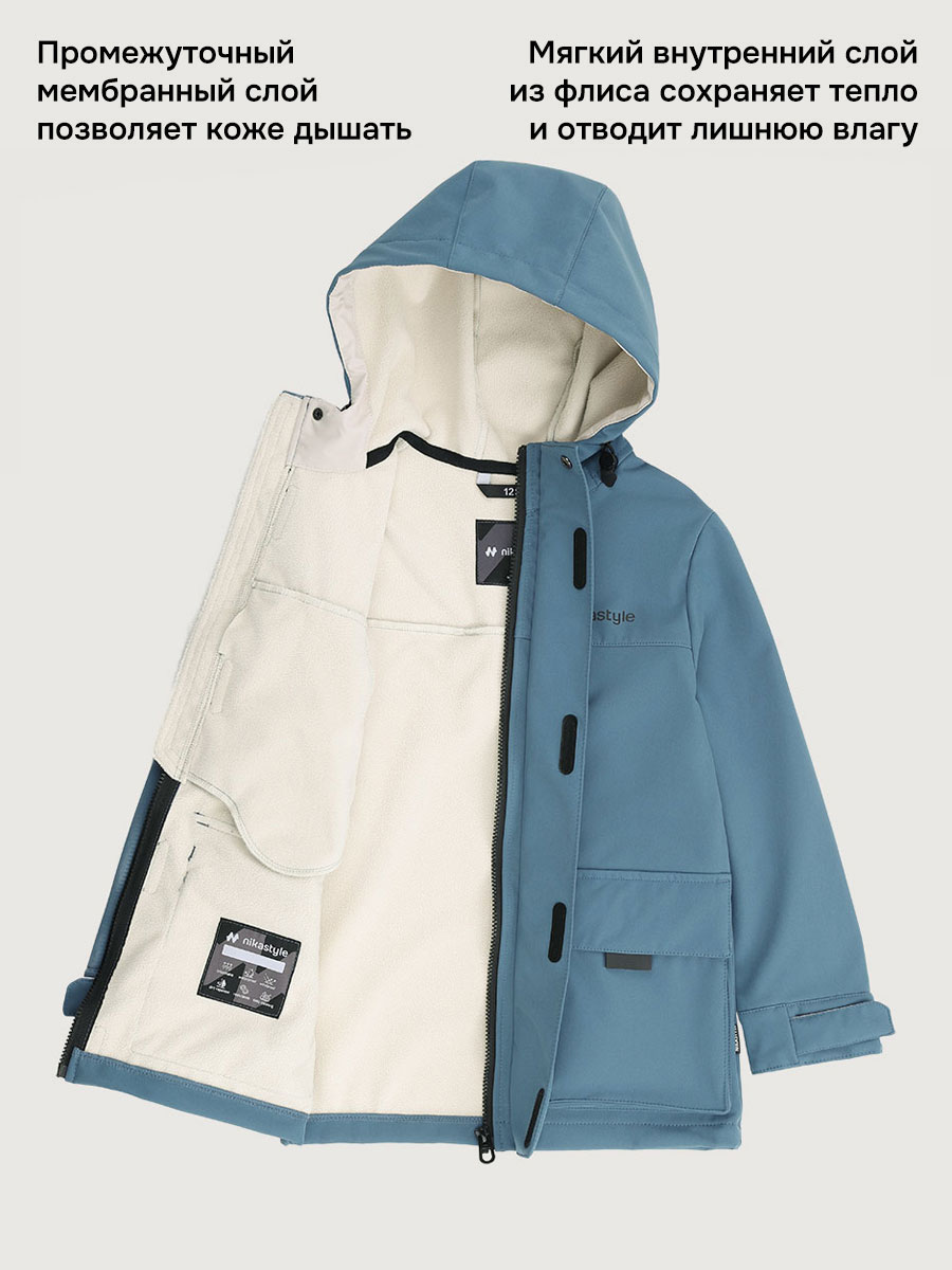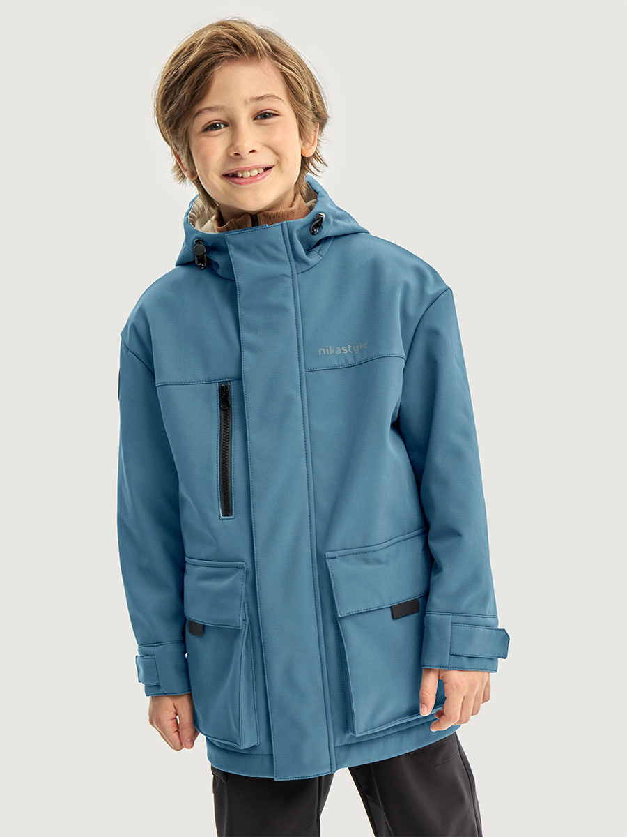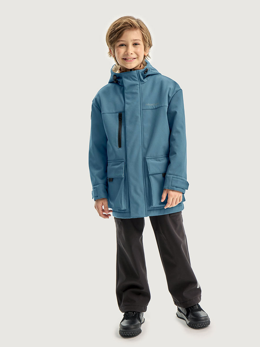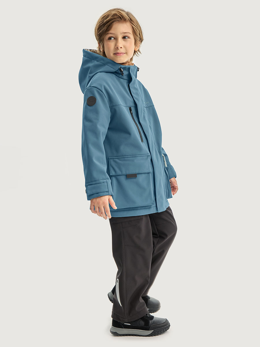 Ветровка для мальчика ДЖУНИОР из Softshell идеально подходит активным детям на прогулках, которые много двигаются и не сидят на месте. Softshell - это инновационный материал нового поколения, внешний слой которого защищает от влаги и ветра, внутренний слой из флиса сохраняет тепло и отводит лишнюю влагу, а промежуточный мембранный слой имеет хорошую паропроницаемость и позволяет коже дышать. Softshell приятный на ощупь, легкий и эластичный материал, не сковывающий движения ребенка.