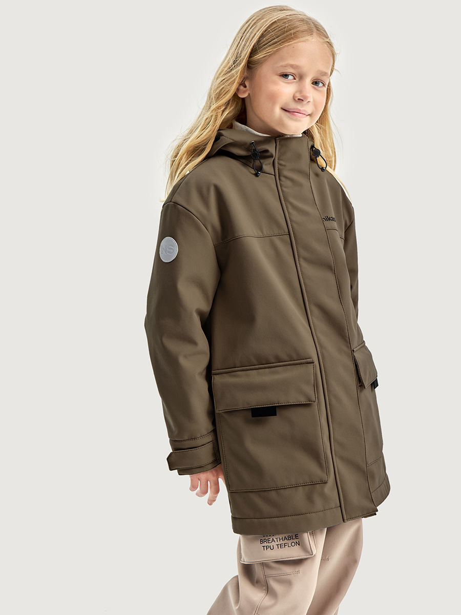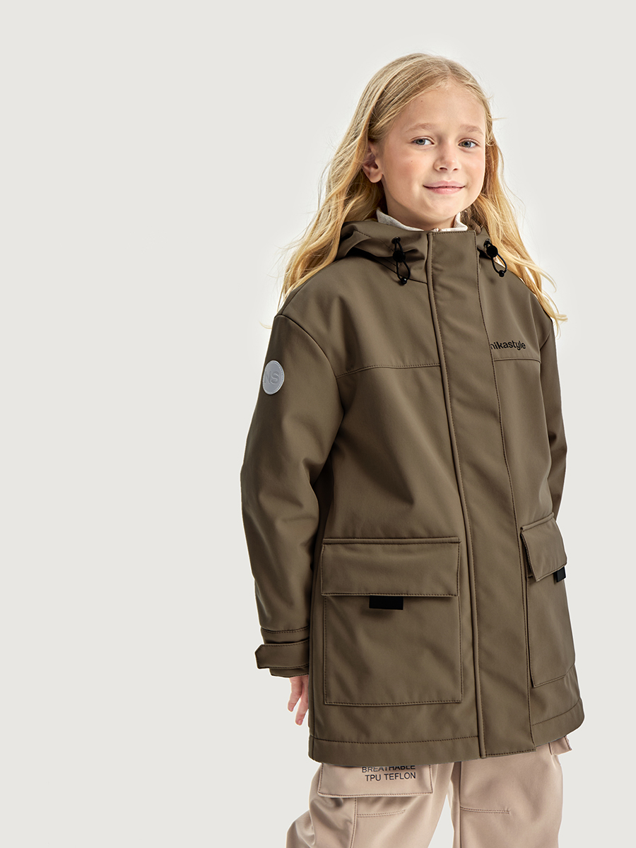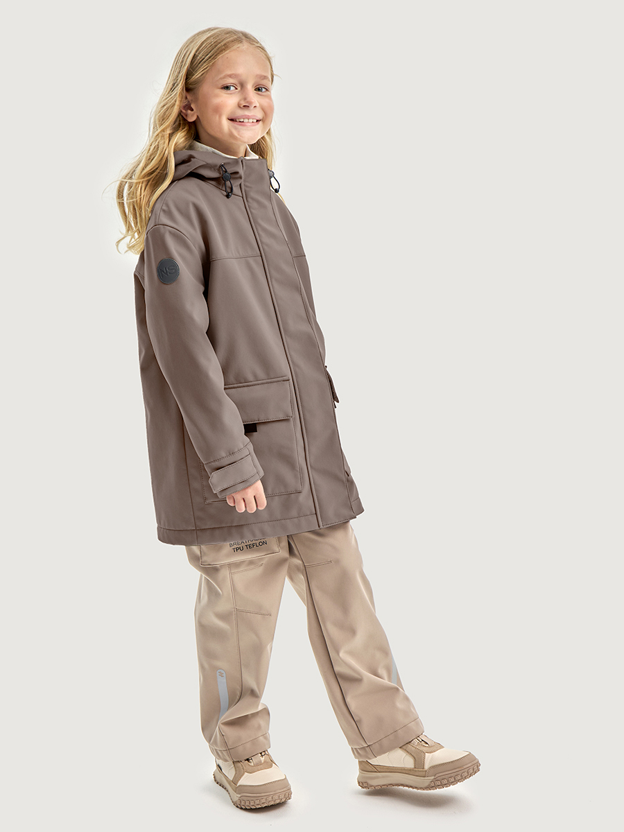 Ветровка для девочки ДЖУНИОР из Softshell идеально подходит активным детям на прогулках, которые много двигаются и не сидят на месте. Softshell - это инновационный материал нового поколения, внешний слой которого защищает от влаги и ветра, внутренний слой из флиса сохраняет тепло и отводит лишнюю влагу, а промежуточный мембранный слой имеет хорошую паропроницаемость и позволяет коже дышать. Softshell приятный на ощупь, легкий и эластичный материал, не сковывающий движения ребенка.