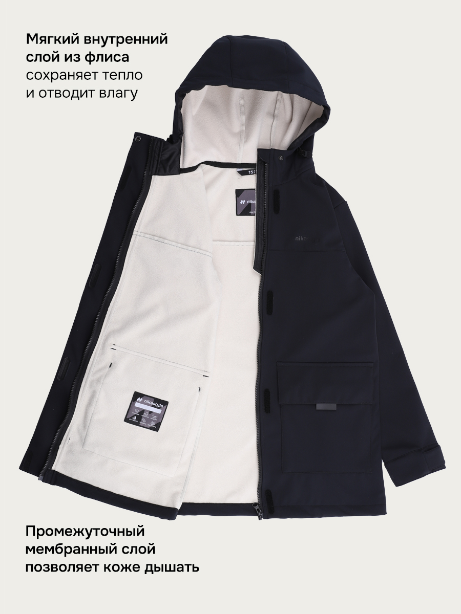Мы все продумали до мелочей, поэтому модель оснащена манжетами с регулировкой длины на липучках для защиты от проникновения холодного ветра.
