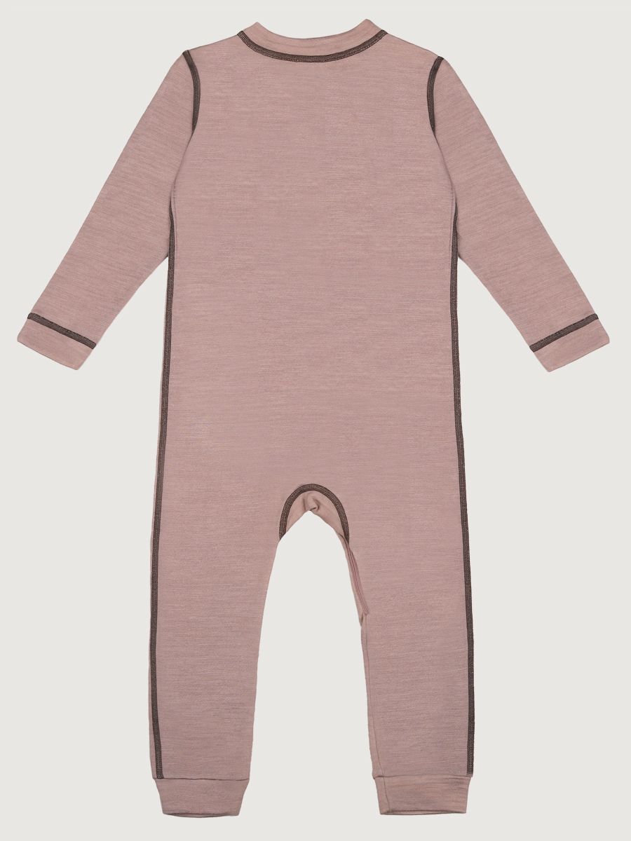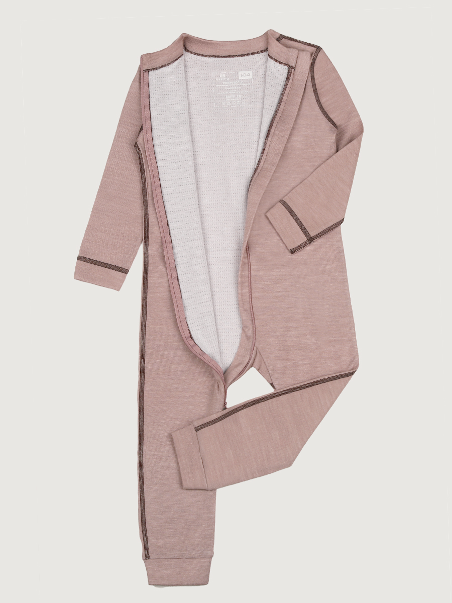 Комбинезон для девочки ТЕРМО на молнии из двухслойного трикотажного полотна. Внешний слой состоит из шерстяных и акриловых нитей, сохраняющих тепло и выводящих лишнюю влагу.