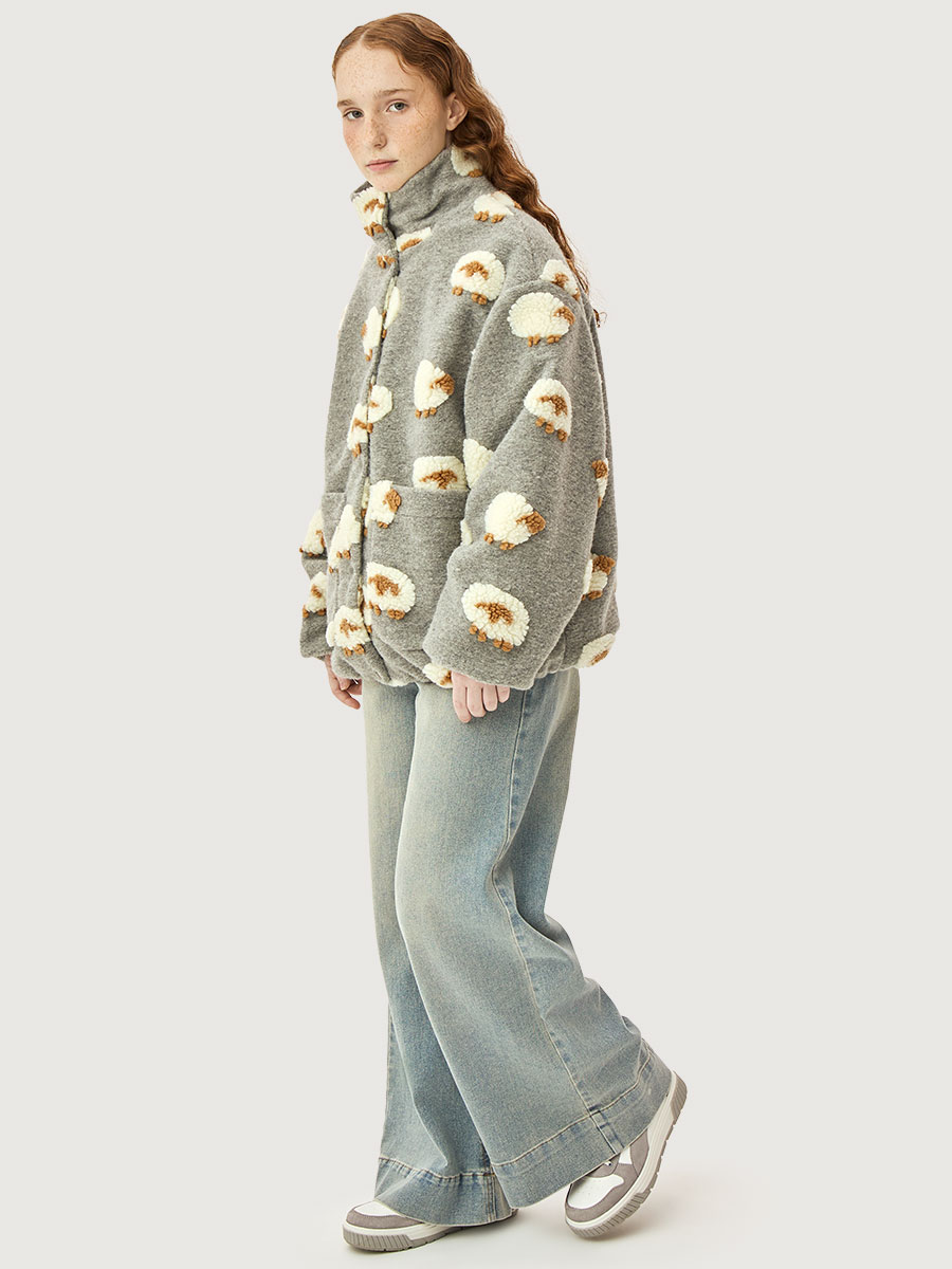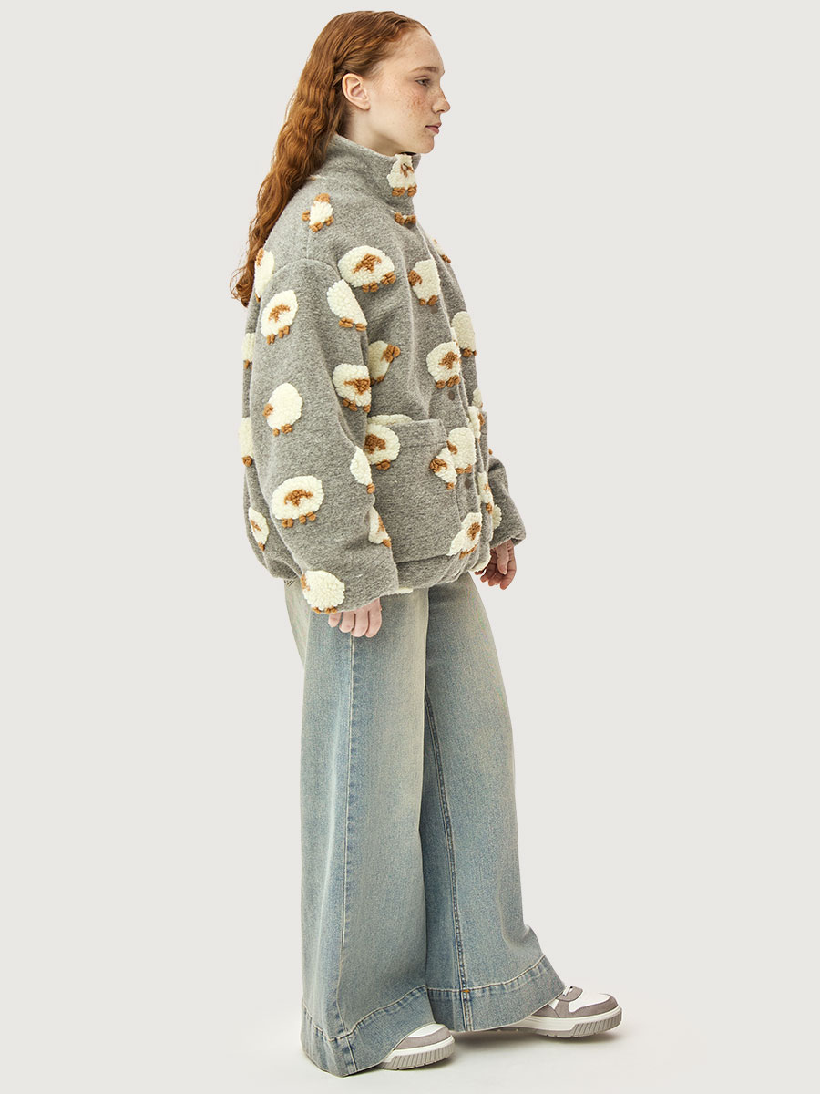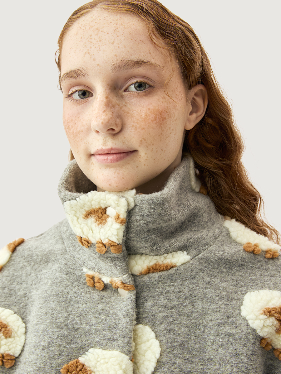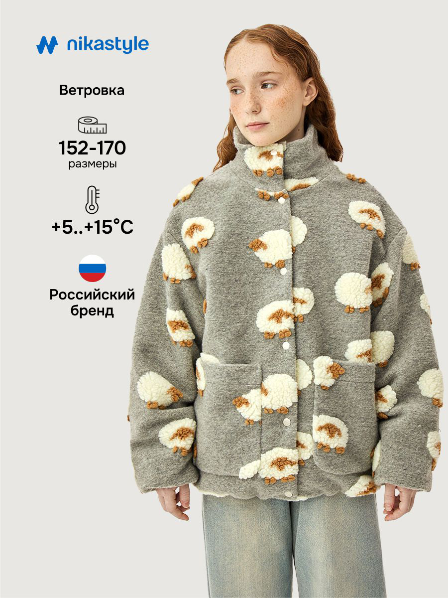 Ветровка-бомбер ОВЕЧКИ из пальтовой ткани букле премиум качества. Пальтовая ткань букле мягкая, приятная на ощупь, но при этом легкая и комфортная в носке. Подкладка из гладкой ткани добавляет дополнительное удобство.