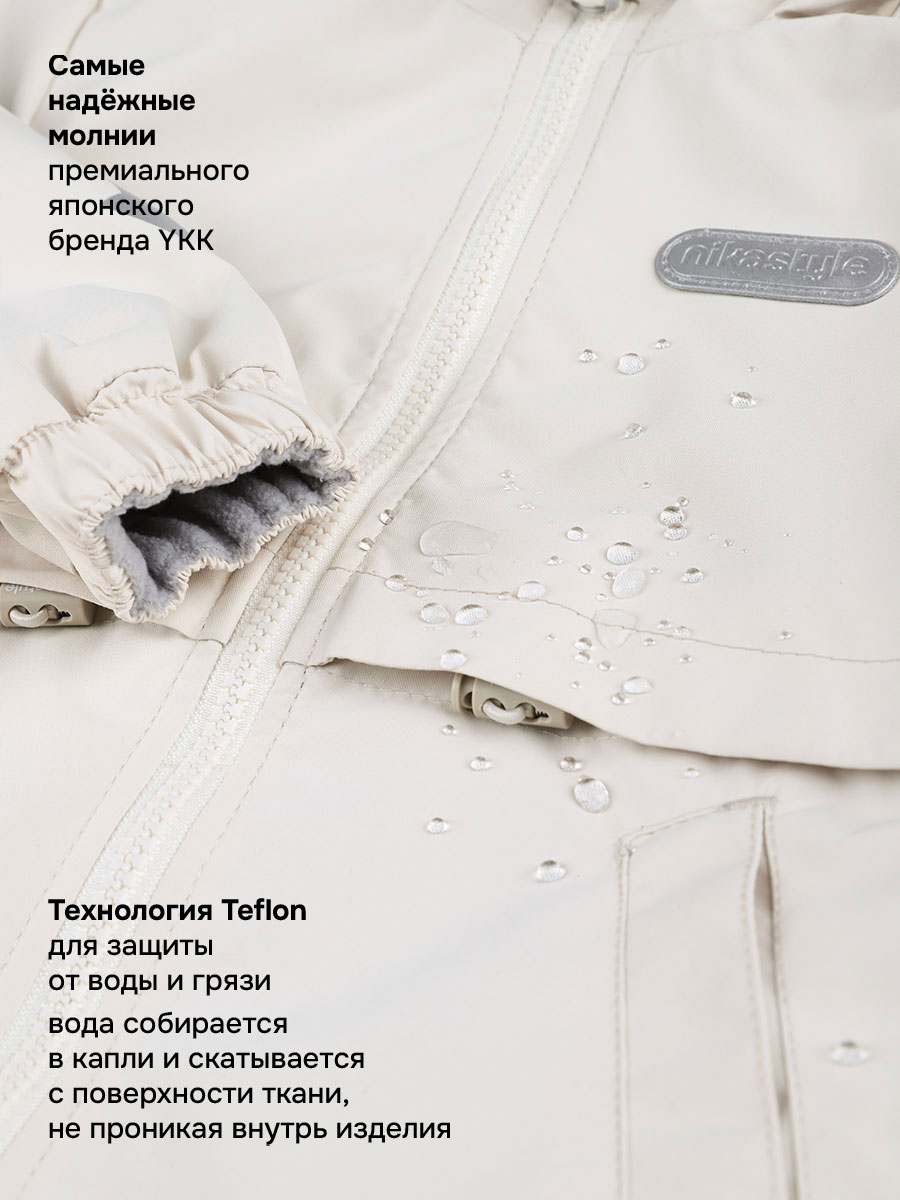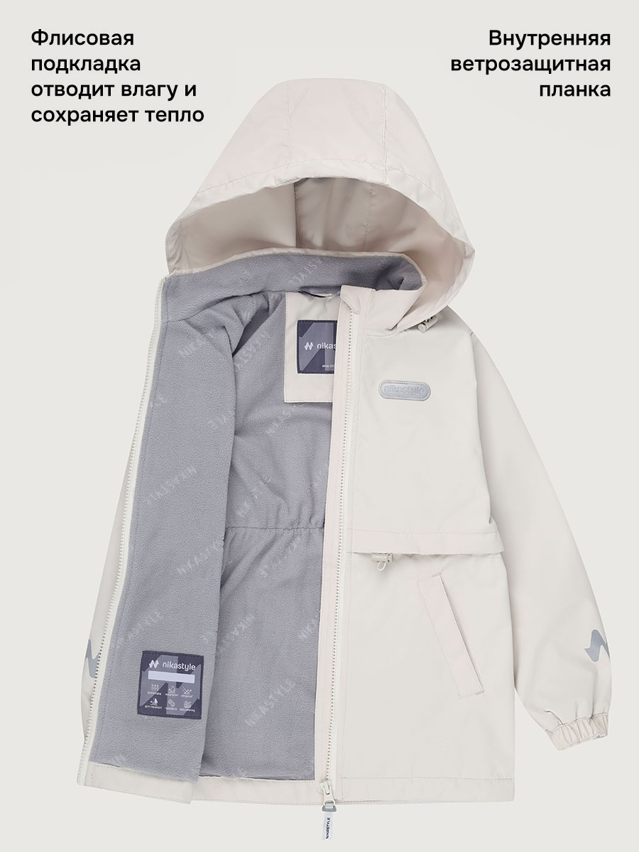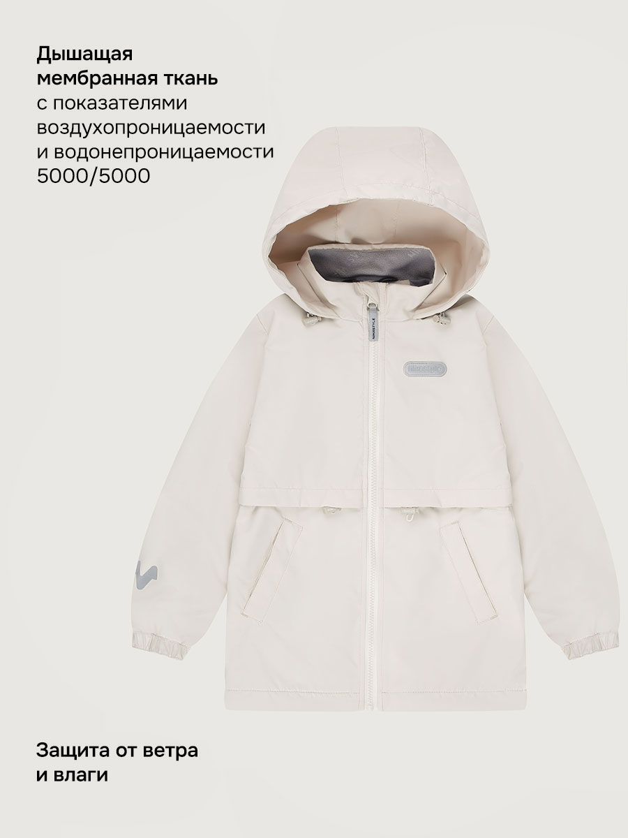 Мембранная ткань - это непродуваемый и водонепроницаемый материал, который надежно защищает от ветра и влаги. Благодаря дышащим свойствам мембраны ребенку будет комфортно в любую погоду, и он не вспотеет. Флисовая подкладка отводит влагу и имеет хорошие теплоизоляционные свойства.