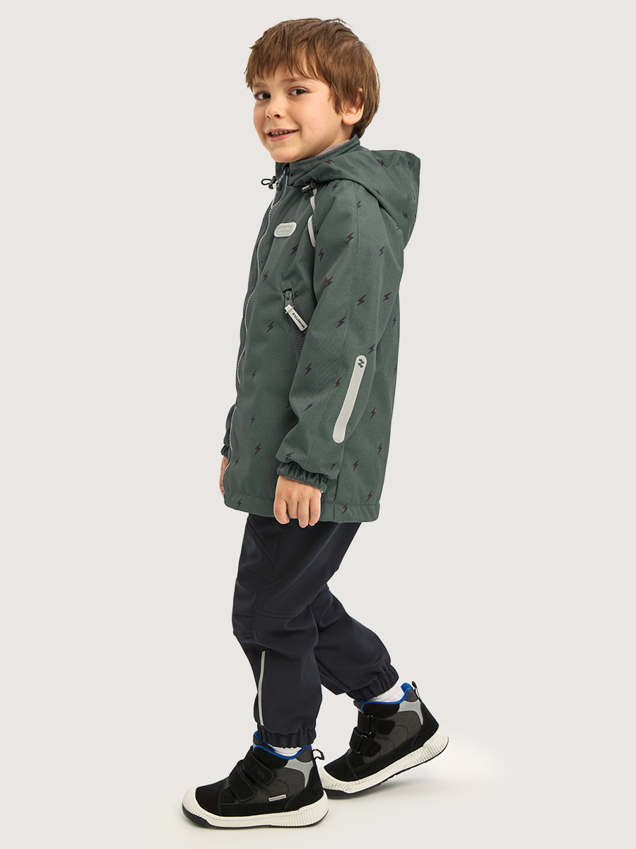 Мембранная ткань - это непродуваемый и водонепроницаемый материал, который надежно защищает от ветра и влаги. Благодаря дышащим свойствам мембраны ребенку будет комфортно в любую погоду, и он не вспотеет. Ткань обработана снаружи экологически чистым протектором TEFLON для защиты от воды и грязи. Флисовая подкладка отводит влагу и имеет хорошие теплоизоляционные свойства.